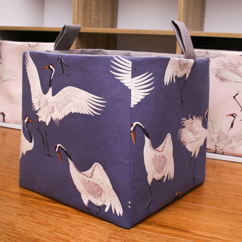 Cube Basket With Crane Birds Purple - DANCING CRANES