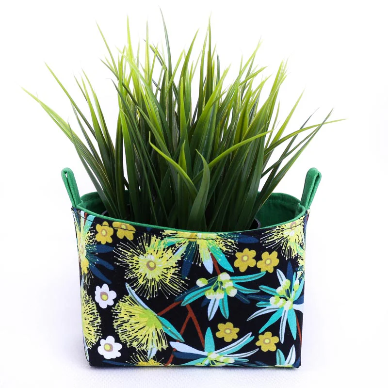 YELLOW FLOWERING GUM - Small Green Fabric Storage Basket